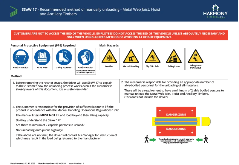 SSoW17 – Recommended method of manually unloading – Metal Web Joist, I-Joist and Ancillary Timbers