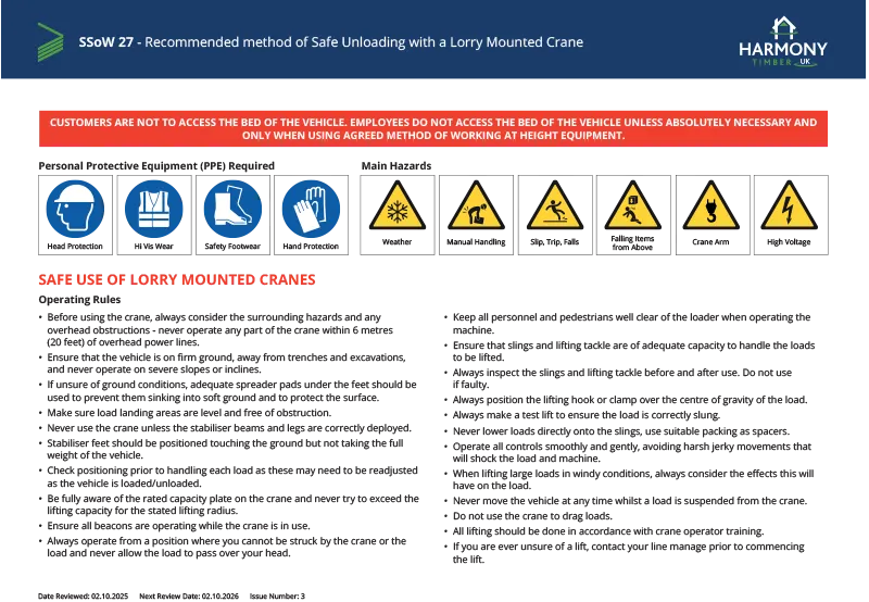 SSoW14 – Safe Unloading of Panels using a Crane
