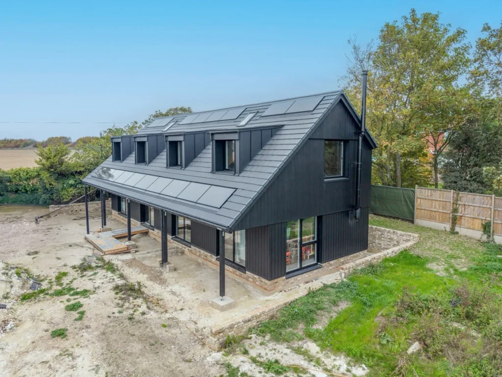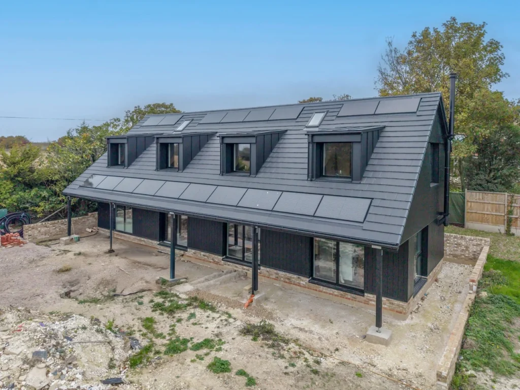 This self-build, three-bedroom home in the countryside features an airtight design that embodies a passive house philosophy. Early collaboration with the clients’ architects and engineers in 2024 facilitated a harmonious blend of aesthetic appeal and structural integrity. The home boasts a fully vaulted roof structure to enhance vertical space and is strategically orientated to the south, maximising glazing to harness solar energy during the colder months.