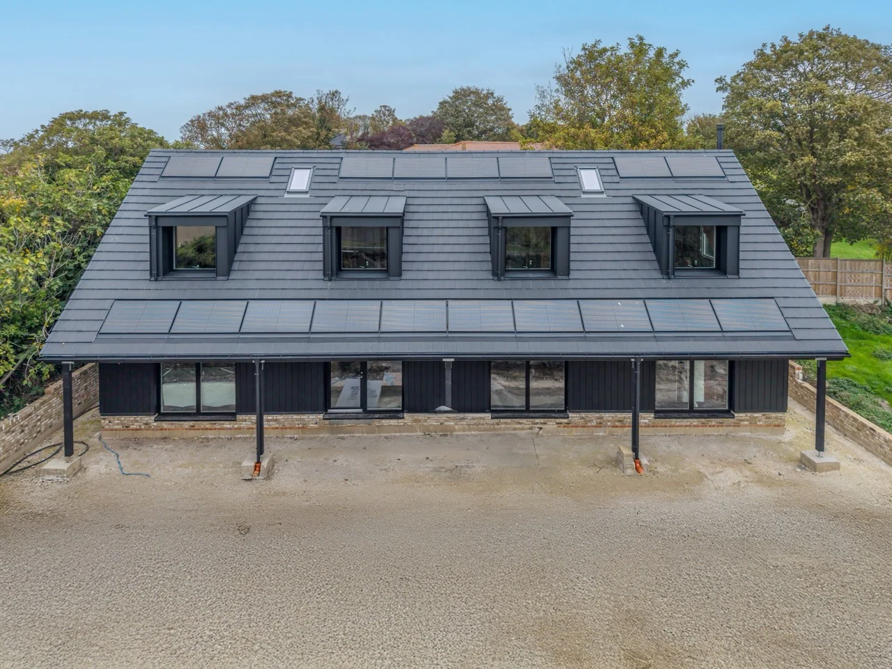 This self-build, three-bedroom home in the countryside features an airtight design that embodies a passive house philosophy. Early collaboration with the clients’ architects and engineers in 2024 facilitated a harmonious blend of aesthetic appeal and structural integrity. The home boasts a fully vaulted roof structure to enhance vertical space and is strategically orientated to the south, maximising glazing to harness solar energy during the colder months.