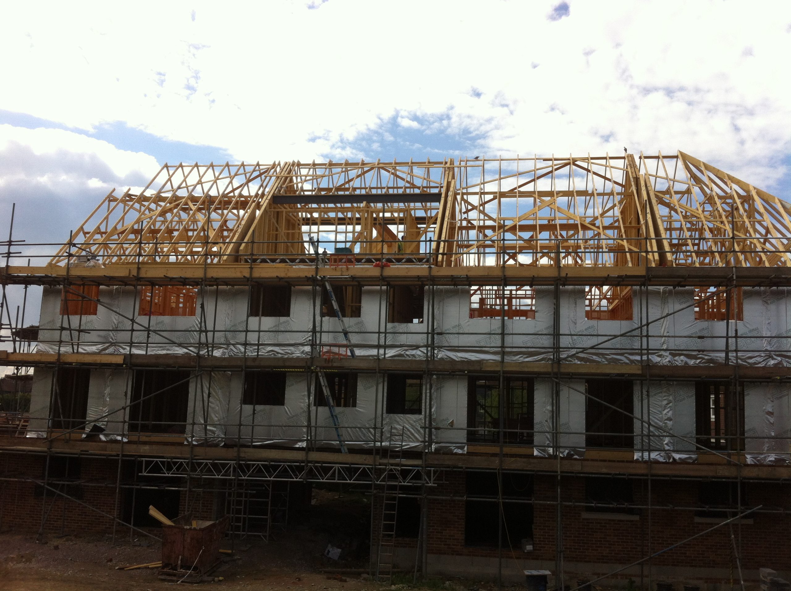 We have been providing the metal web floor joists, roof trusses, timber frame and spandrel panels for this project, ‘Willowbank’. It is an exciting timber frame project that features a striking curved section that we have been working on in Sandwich, Kent for several months now. We are well underway with the first 12 out of 18 timber frame units completed and watertight.